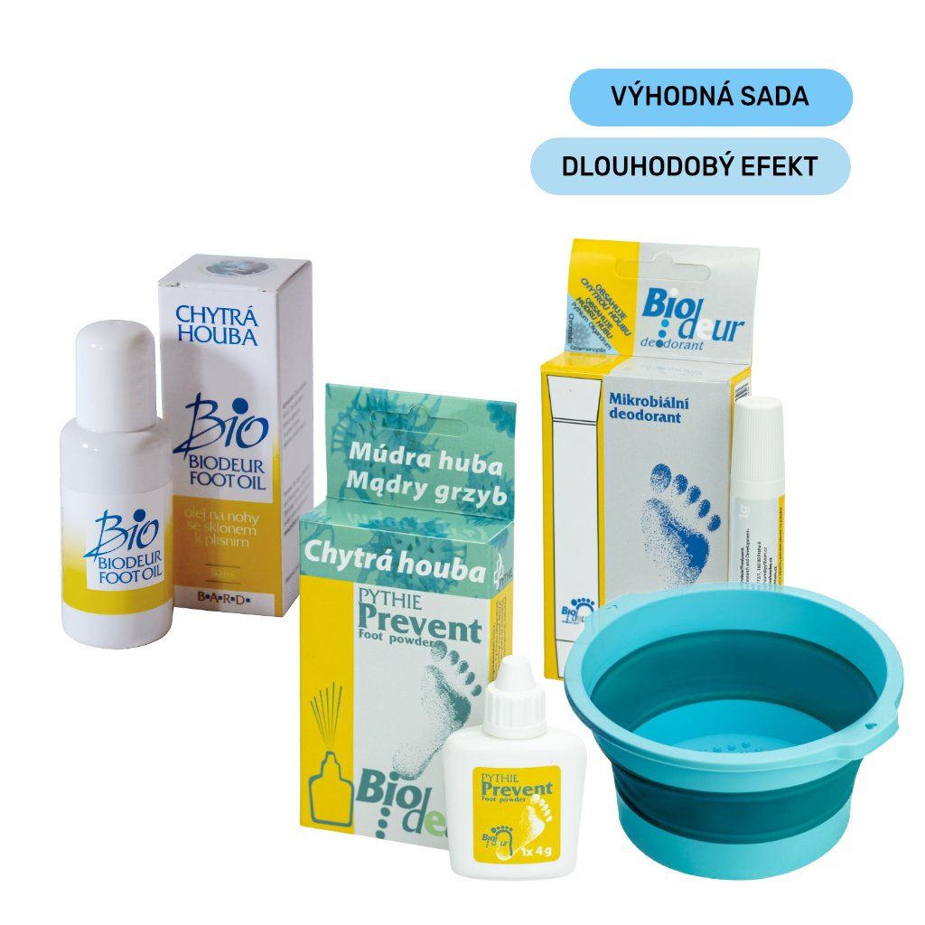 Ucelené řešení pro zdravou pokožku chodidel a hygienu prostředí Plíseň nohou, nadměrné pocení a doprovodný zápach trápí až 70 % Čechů. Málokdo ví, že plíseň se snadno přenáší kontaktem v bazénech, šatnách nebo i ve společné domácnosti. Boj s ní bývá dlouhodobý, protože patogeny přežívají i v obuvi, na kterou se často zapomíná. Balíček komplexní péče od Biodeur představuje ucelenou, třístupňovou kúru, která biologicky působí na všechny zdroje potíží. Je postaven na unikátním mikroorganismu Pythium oligandrum (Chytrá houba) a doplněn o praktickou skládací vaničku pro zajištění maximálního hygienického standardu a hloubkového účinku lázně.