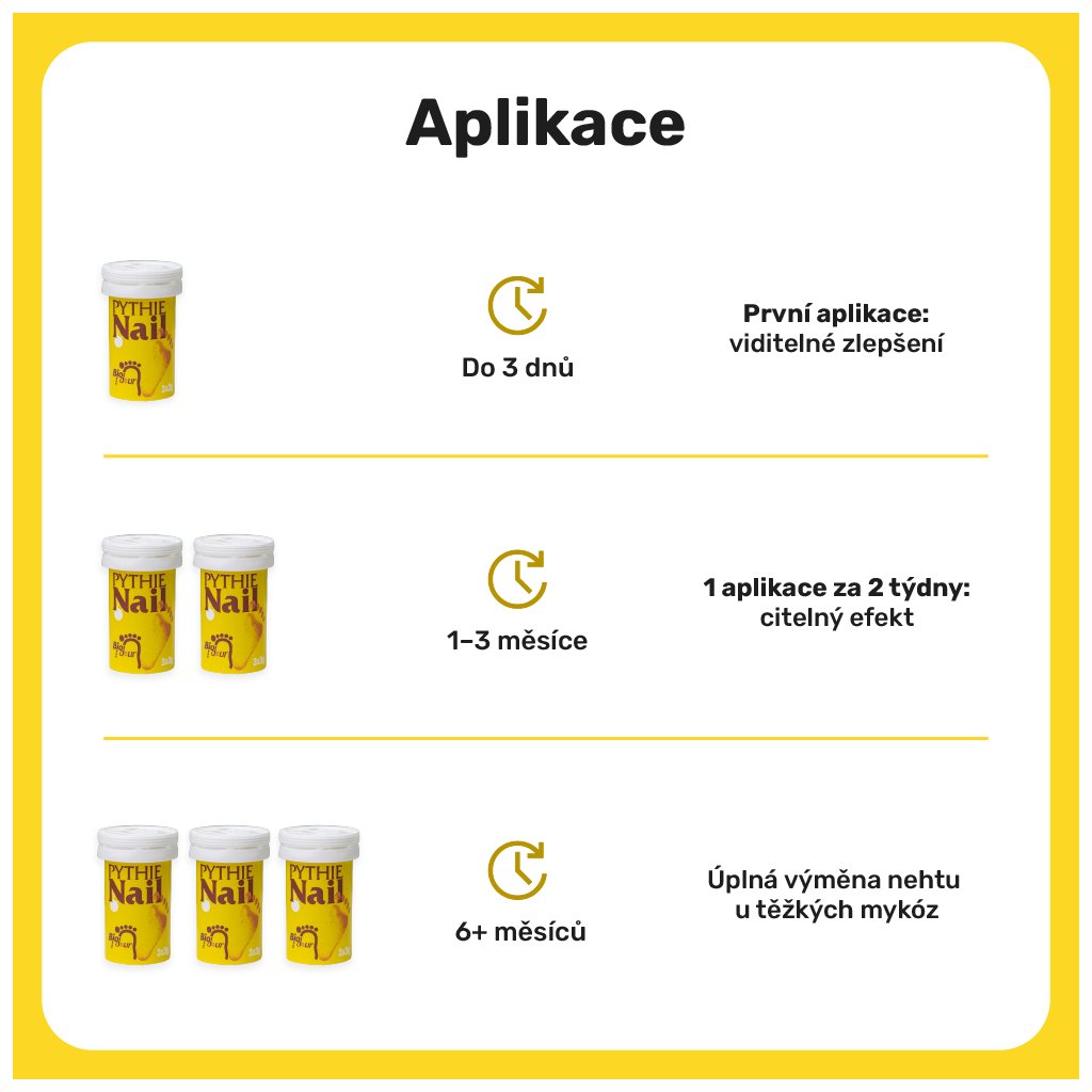 💡 Tip: Zbytek roztoku využijte i na vytření obuvi. Nepoužívejte současně jiné prostředky k dezinfekci bot. Během kúry ani 24 hodin po aplikaci nehty nelakujte.