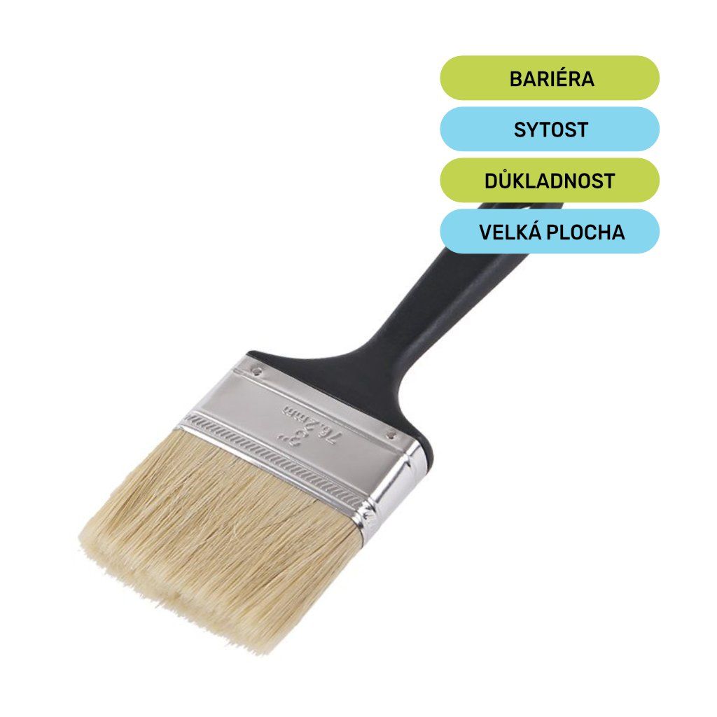 - Hloubková penetrace: pevné štětiny pomáhají vmasírovat ochrannou vrstvu přímo do pórů zdi, což zvyšuje účinnost likvidace plísní.