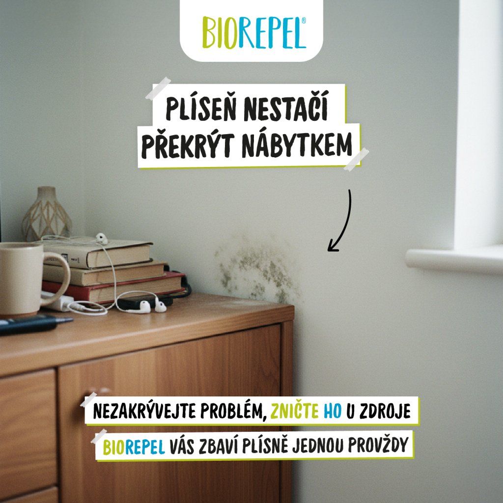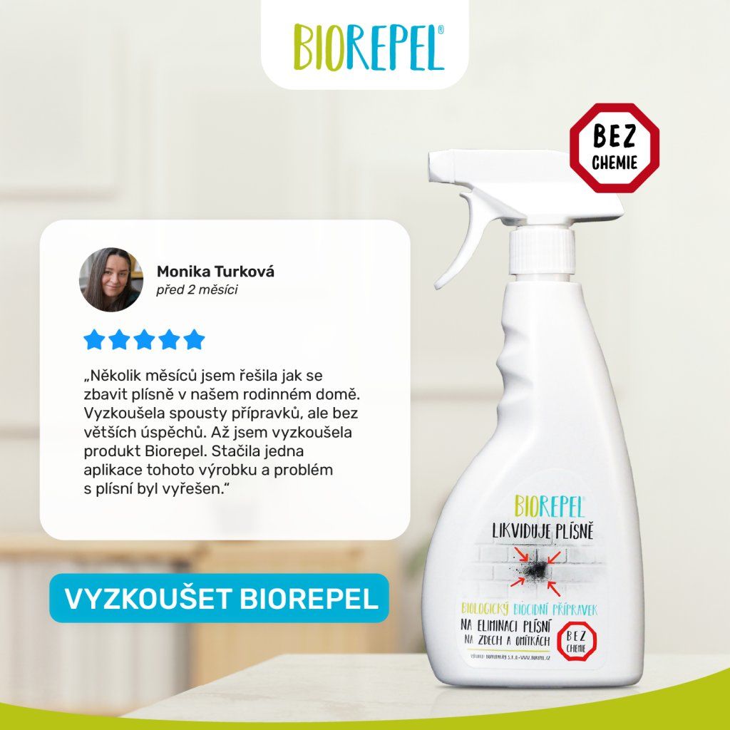 Biorepel ale pracuje jinak. Obsahuje naši patentovanou aktivní látku, která proniká hluboko do zdi a plíseň likviduje u kořene. Díky tomu má dlouhodobý účinek, funguje bezpečně bez chemie a hlavně je vyroben v Česku.